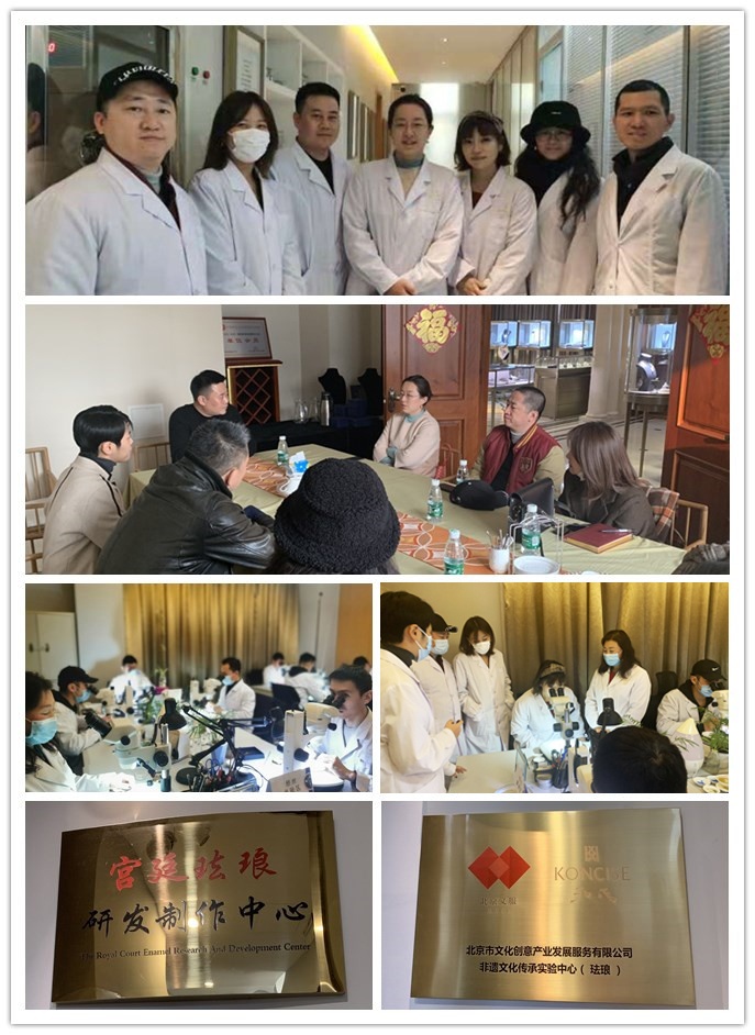 宮廷琺瑯研發(fā)制作中心主任、孔氏琺瑯創(chuàng)始人孔令俊,向營(yíng)銷公司到訪人員詳細(xì)介紹了琺瑯的發(fā)展歷史、設(shè)計(jì)理念和制作工藝等。他指出,琺瑯有玉的溫潤(rùn)、珠寶的光輝以及骨瓷的細(xì)致,最重要的是這種材質(zhì)歷久彌新,不會(huì)氧化褪色,即使經(jīng)過(guò)上百年,琺瑯明亮的色彩也不會(huì)褪卻。它們就像逃脫了時(shí)間的法則,得以永遠(yuǎn)年輕。中心展廳展現(xiàn)的琺瑯鐘表、首飾等眾多收藏品無(wú)一不驚艷到在場(chǎng)的各位,大家紛紛表示這是一場(chǎng)震撼人心的視覺(jué)盛宴。