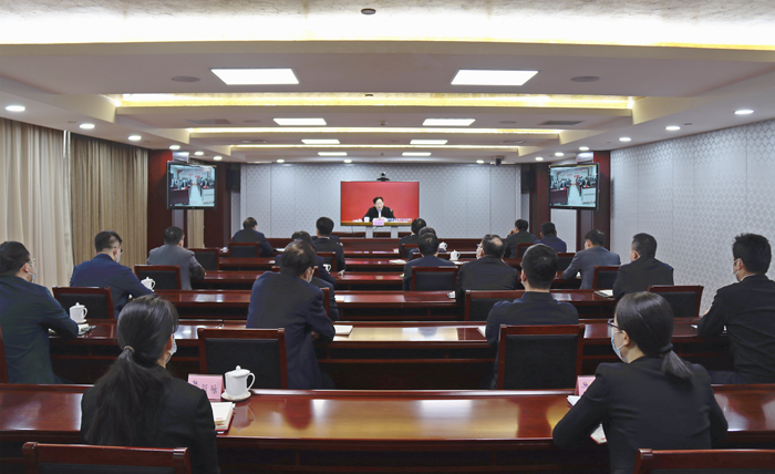集團公司領導班子成員在視頻分會場參加報告會。