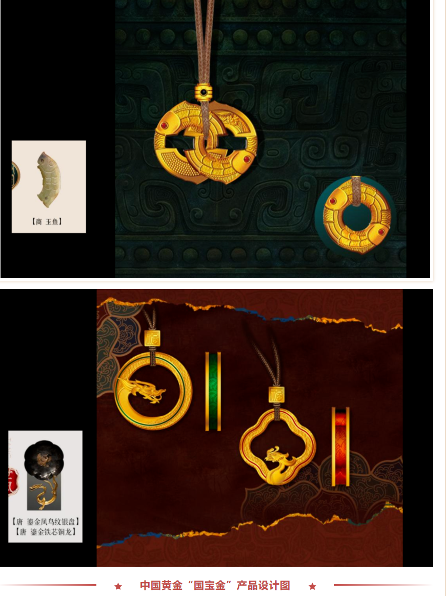 在此背景下,中國黃金作為黃金價值的傳遞者,也積極回應時代浪潮和市場需求,不斷滿足老百姓對于美好生活的向往和期待,推動中華優秀傳統文化創造性轉化、創新性發展,為實現中華民族偉大復興中國夢提供不竭精神動力、貢獻赤誠“黃金力量”。2022年一季度,中金珠寶產品設計研發團隊瞄準“文化”二字,深耕研發創新,不斷思考“文化+”賦能產品的新路徑。“習近平總書記曾表示,‘讓收藏在博物館里的文物、陳列在廣闊大地上的遺產、書寫在古籍里的文字都活起來,豐富全社會歷史文化滋養。’讓文物活起來,要讓文物深深融入人們的生活,我們是不是也應該做些什么,讓文物保護成果更多惠及人民群眾,更好傳遞央企責任和黃金價值?”中金珠寶產品設計研發團隊在某一次日常的交流探討中,碰撞出這樣的想法。為此,研發團隊以此為思想起點制定了一個長期規劃。具體來說,就是以“當中國黃金遇上國寶”為主題,加強與中國文物交流中心合作,整合國內博物館文物資源,以文物元素為設計核心,以館藏文物為設計主題載體,融入文化內涵、藝術品位、古法工藝價值為一體,至臻至美。研發類別包括國寶文創首飾、禮品、擺件、金條、盲盒等。“在促進國家文物保護力度,推進文物合理適度利用的同時,也履行央企責任、發揮央企優勢,從生產經營工作入手做出應有的貢獻。”中金珠寶產品交易部(研發設計中心)總經理李思佳說。