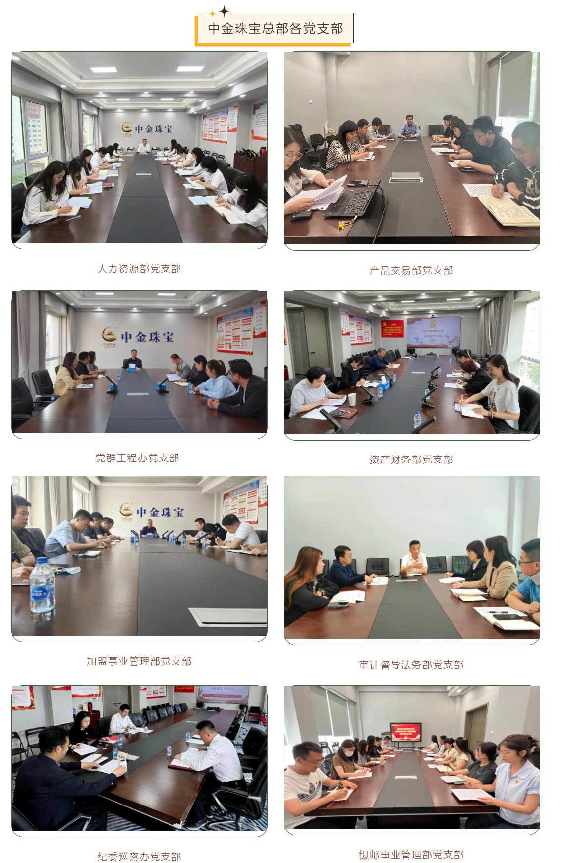中金珠寶所屬33個黨支部結合本單位、部門實際研究制定工作計劃、方案,精心組織學習研討,深入開展談心談話。各黨支部書記代表黨支部圍繞會議主題作對照檢查,廣大黨員結合自身工作實際情況逐一發言,講述自身的學習收獲和差距不足,剖析問題根源,進行了全面盤點和檢視,其他黨員同志對每位發言的黨員進行了批評幫助,指出差距不足,并提出整改建議。大家推心置腹、開誠布公,談問題、找原因、提建議,在交流中統一思想,在學習中提高認識,在工作中增進團結,有力提升了各黨支部的凝聚力和戰斗力。針對查擺出來的問題,各黨支部形成整改清單,明確整改措施、整改時限,正緊鑼密鼓推進整改工作。