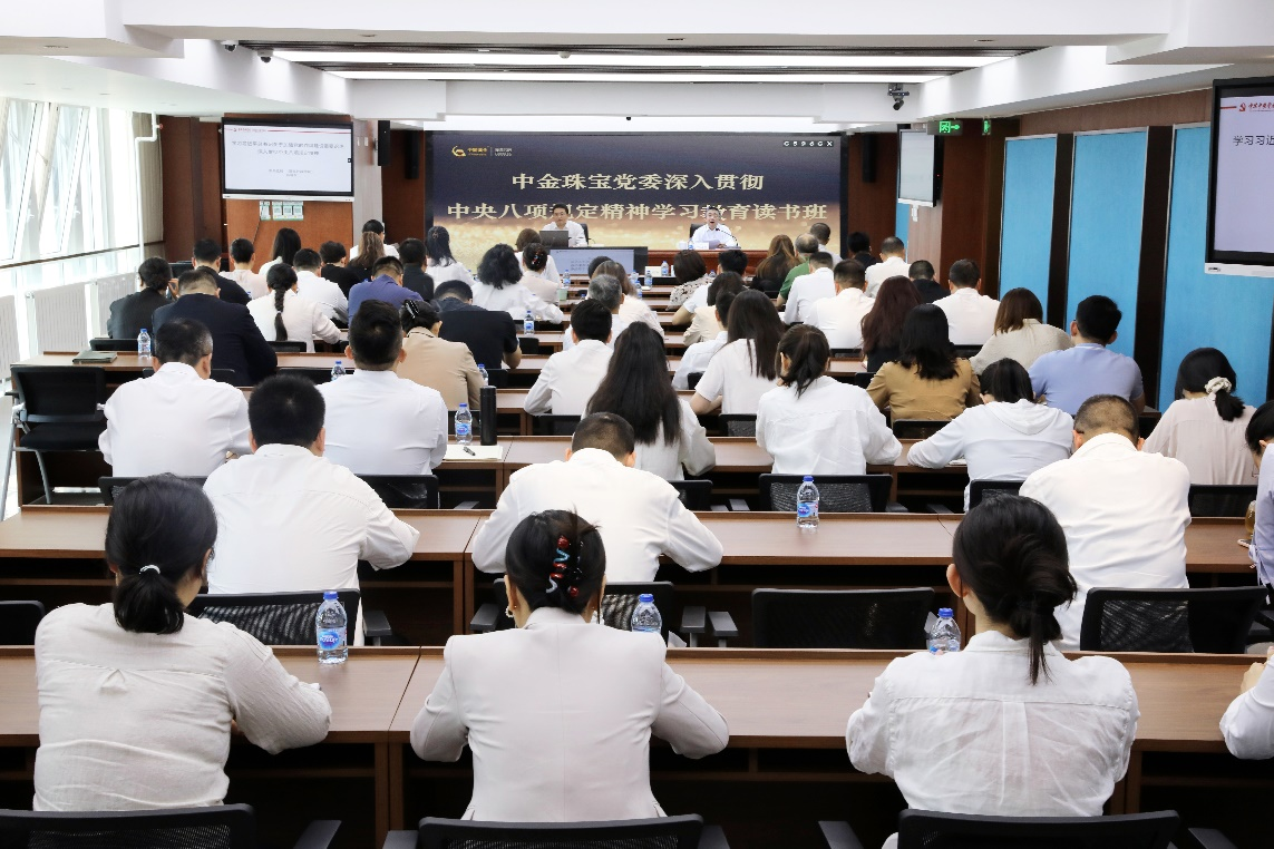 集體學習會后,中金珠寶領導班子成員還進行了個人自學和黨委理論中心組學習,原原本本學習《黨的十八大以來深入貫徹中央八項規定精神的成效和經驗》、中央八項規定及其實施細則精神等內容,準確把握原文原理、深入領會精髓要義;共同觀看視頻《酒駕之害—永遠的痛》《河南信陽通報》和《八項規定改變中國—黨在新時代的徙木立信之舉》,豐富學習形式、強化以案示警;圍繞“深入貫徹中央八項規定精神”這一主題展開深入研討,部分部門負責同志作專題發言,領導班子成員作重點發言,結合分管工作交流學習體會、提出工作舉措。